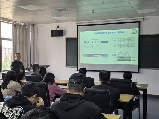 刘明斌博士的报告题目为“VAT1L促进流感病毒进入的作用机制”,其研究主要利用CRISPR/Cas9技术建立人细胞膜蛋白基因敲除文库,以H7N9病毒为模式病毒进行宿主因子筛选,发现囊泡胺基转运体1类似物(VAT1L)促进IAV进入宿主细胞,机制研究发现IAV通过上调VAT1L表达来稳定EEA1蛋白水平,调控PI3K催化生成PI3P,促进IAV经内体转运途径入核复制。