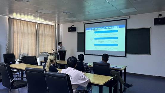 张帅众博士以“基于过渡金属催化的1H-吲唑导向合成研究”为题,介绍了课题组使用1H-吲唑为导向集团,Pd催化的γ-C(sp3)–H酰氧化和烷氧化反应。同时,开发了(1H-吲唑基)喹啉作为配体,实现了Pd催化TBHP介导的烯烃选择性Wacker型氧化和氧代酰氧基化反应,为1H-吲唑导向Pd催化的γ-C(sp3)–H活化和Wacker型反应的应用提供了新的思路。