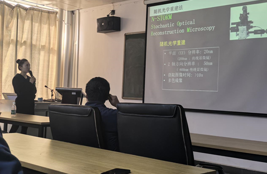 陆莹莹工程师报告题目为“尼康N-STORM超分辨显微术及相关应用”。陆工程师首先介绍超分辨显微术的发展历程,之后对比了N-STORM超分辨显微术与共聚焦显微镜的差别与优势,最后对其在生物显微成像中的应用进行了总结。