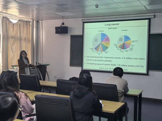 蒋淑平博士以“Altingia chinensis petroleum ether extract suppresses NSCLC via induction of apoptosis, attenuation of EMT, and downregulation of PI3K/Akt pathway”为题,首先介绍了非小细胞肺癌(NSCLC)的研究进展,之后介绍了APE对非小细胞肺癌发生发展的影响,并初步探究了其作用机制。研究发现了APE通过诱导细胞凋亡、减弱EMT对NSCLC发挥抗肿瘤作用,其机制涉及抑制PI3K/Akt信号通路。